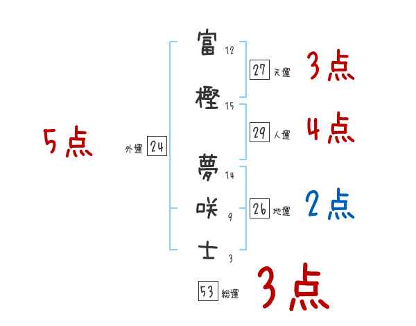 富樫夢咲士さんの画数の鑑定結果