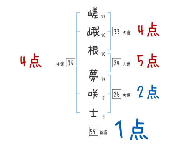 嵯峨根夢咲士さんの画数の鑑定結果