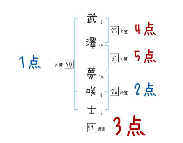 武澤夢咲士さんの画数の鑑定結果