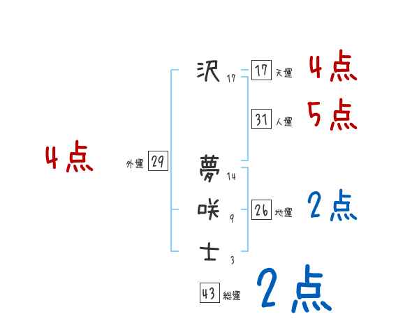 沢夢咲士さんの画数の鑑定結果