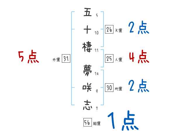 五十棲夢咲志さんの画数の鑑定結果
