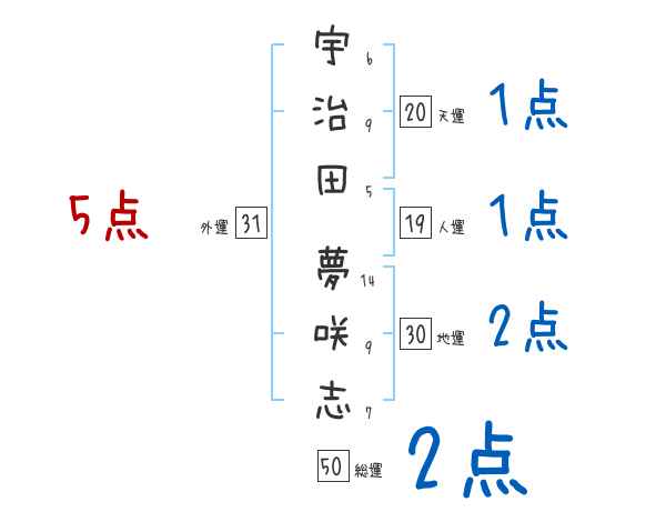 宇治田夢咲志さんの画数の鑑定結果