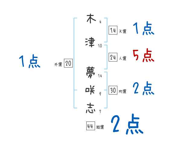 天運![]() | 木津夢咲志さんの天運は14画の1つ星!人に対して優しいがストレスを溜め込みがち。人間関係のトラブルを避けるよう気をつけましょう。 家系が持つ宿命的な運勢を表します。祖先から受け継いだ苗字ですので自分の力が及びません。家柄を象徴します。 |