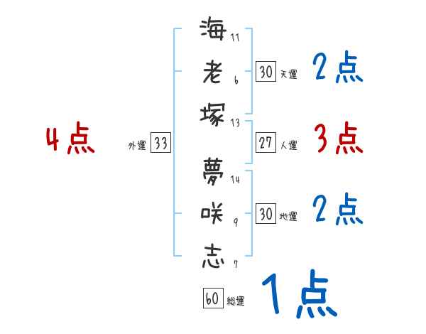 海老塚夢咲志さんの画数の鑑定結果