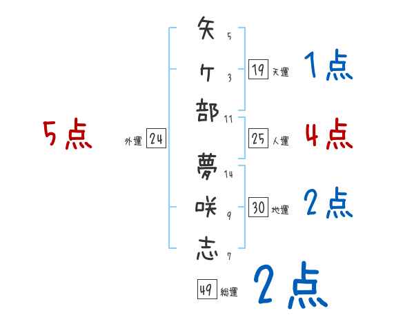 矢ヶ部夢咲志さんの画数の鑑定結果