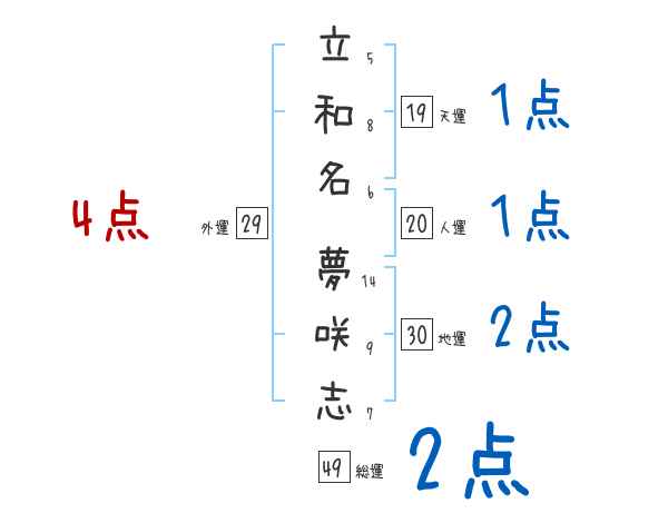 立和名夢咲志さんの画数の鑑定結果