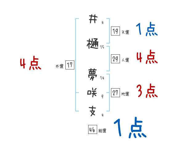 人運![]() | 井樋夢咲支さんの人運は29画の4つ星!完全主義で才能がある。厳格な心の持ち主。 性格や才能などを表す2番目に重要な運勢です。人間関係や協調性、社会的な成功に影響します。主に20歳から50歳ぐらいまでの中年期の運勢を表します。 |