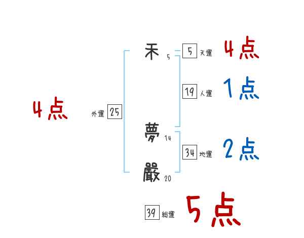 禾夢嚴さんの総運は39画の5つ星