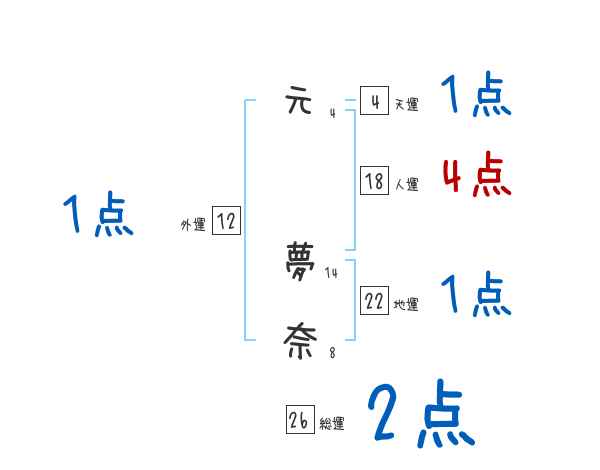 元夢奈さんの画数の鑑定結果