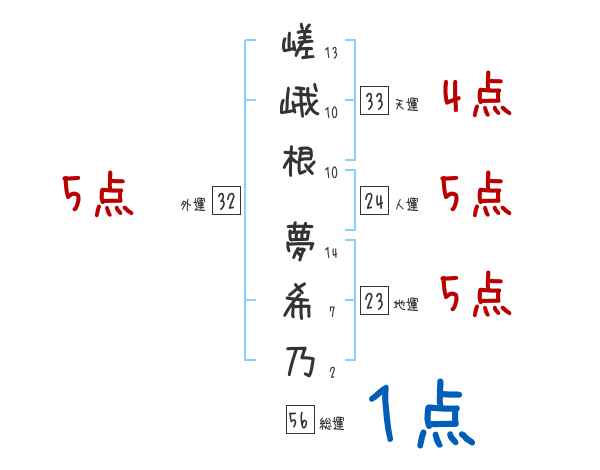 嵯峨根夢希乃さんの画数の鑑定結果
