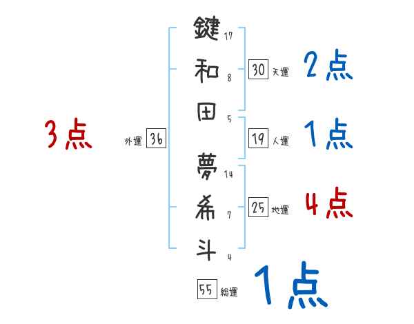 鍵和田夢希斗さんの画数の鑑定結果