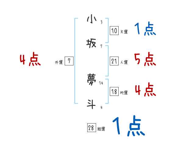 小坂夢斗さんの画数の鑑定結果