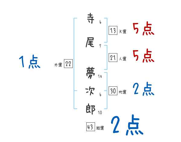 寺尾夢次郎さんの画数の鑑定結果
