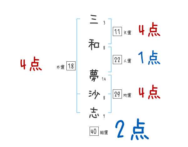三和夢沙志さんの画数の鑑定結果