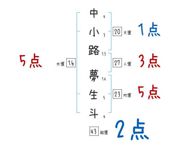 中小路夢生斗さんの画数の鑑定結果