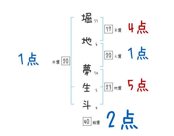 堀地夢生斗さんの画数の鑑定結果