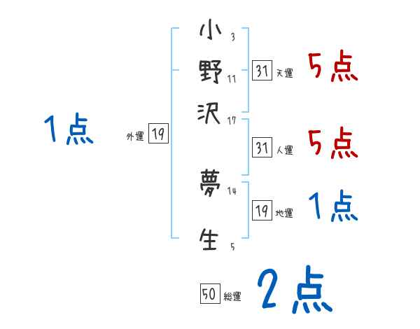 小野沢夢生さんの画数の鑑定結果