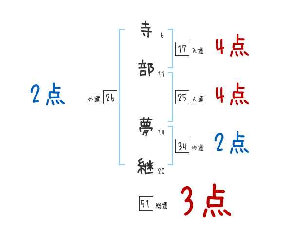 寺部夢継さんの画数の鑑定結果