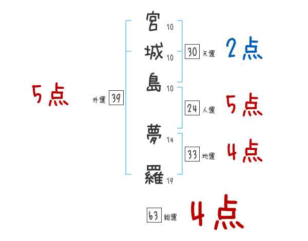 宮城島夢羅さんの画数の鑑定結果