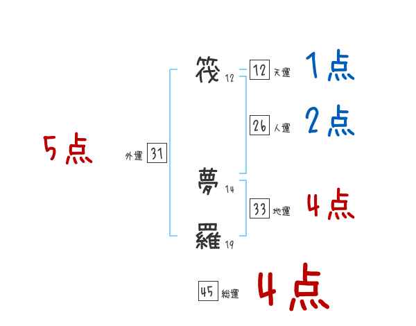 筏夢羅さんの画数の鑑定結果