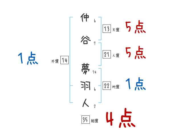 仲谷夢羽人さんの画数の鑑定結果