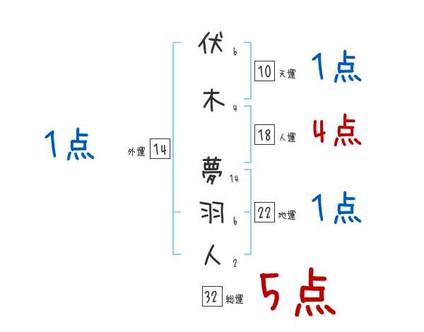 総運![]() | 伏木夢羽人さんの総運は32画の5つ星!柔軟性があり成功する。チャンスが多く金運が良い。 あなたの人生を表す1番重要な運勢です。生涯を通じて影響する総合運となり、主に50歳以降の晩年期に影響を及ぼします。 |