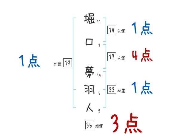堀口夢羽人さんの画数の鑑定結果