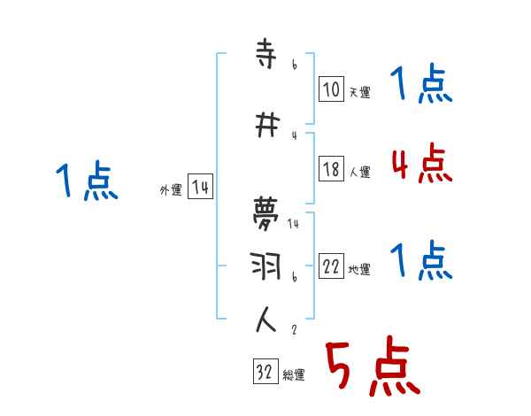 総運![]() | 寺井夢羽人さんの総運は32画の5つ星!柔軟性があり成功する。チャンスが多く金運が良い。 あなたの人生を表す1番重要な運勢です。生涯を通じて影響する総合運となり、主に50歳以降の晩年期に影響を及ぼします。 |