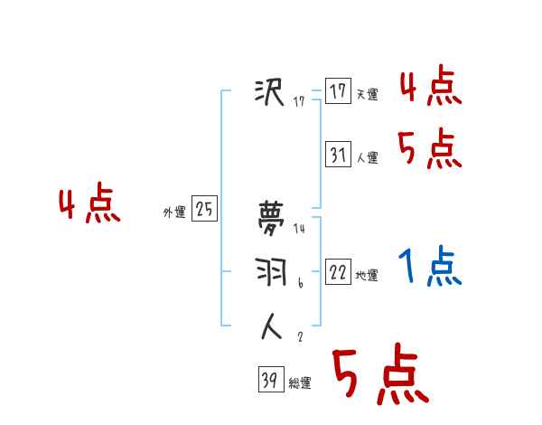 沢夢羽人さんの画数の鑑定結果