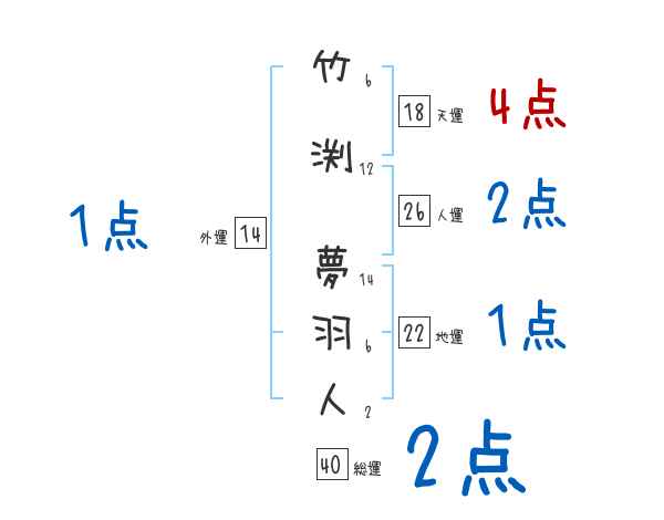 天運![]() | 竹渕夢羽人さんの天運は18画の4つ星!情熱的で剛気。忍耐力があり信頼される。 家系が持つ宿命的な運勢を表します。祖先から受け継いだ苗字ですので自分の力が及びません。家柄を象徴します。 |
