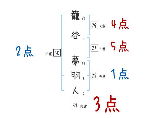 籠谷夢羽人さんの画数の鑑定結果