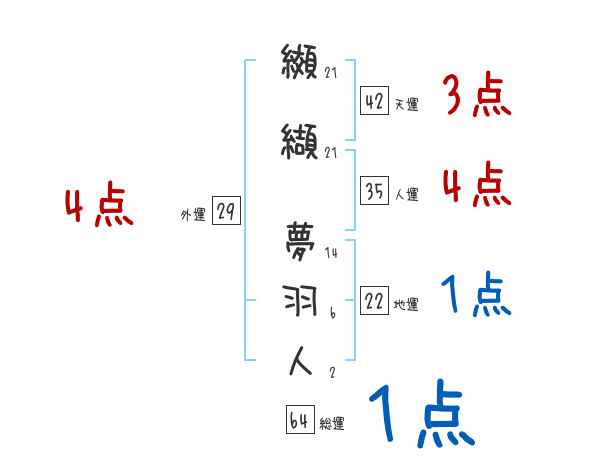 天運![]() | 纐纈夢羽人さんの天運は42画の3つ星!病気に注意。多芸であるが消極的でおとなしい。 家系が持つ宿命的な運勢を表します。祖先から受け継いだ苗字ですので自分の力が及びません。家柄を象徴します。 |