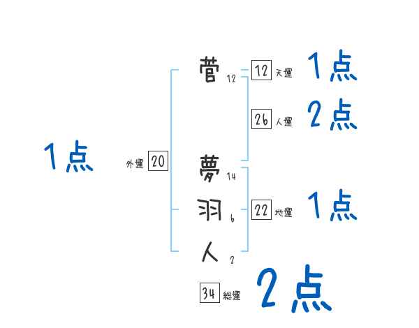菅夢羽人さんの画数の鑑定結果