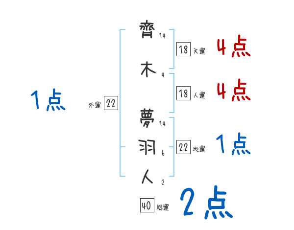 齊木夢羽人さんの画数の鑑定結果