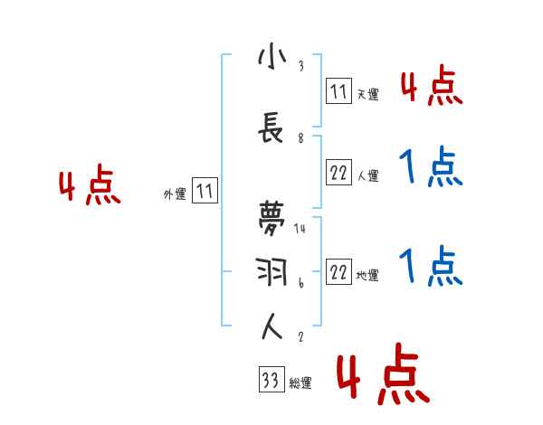 小長夢羽人さんの画数の鑑定結果