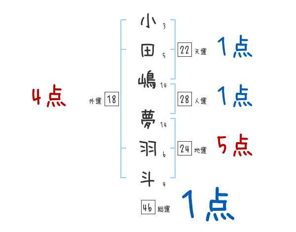 小田嶋夢羽斗さんの画数の鑑定結果