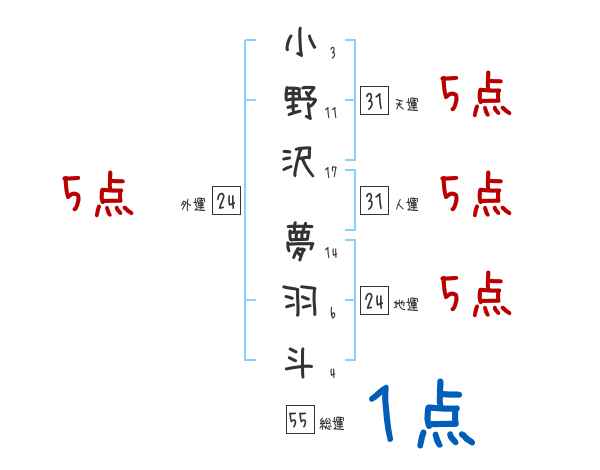 小野沢夢羽斗さんの画数の鑑定結果