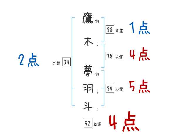 鷹木夢羽斗さんの画数の鑑定結果