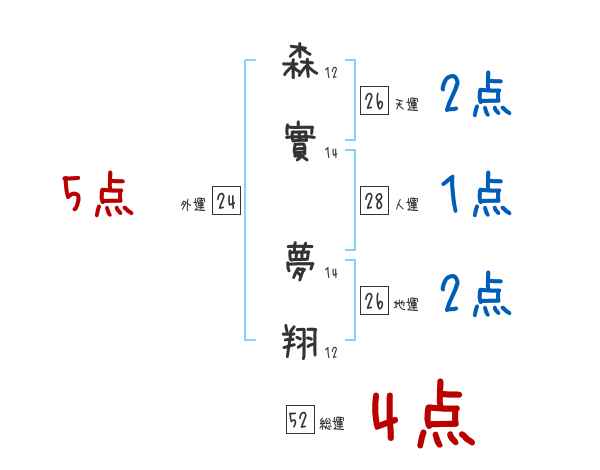 森實夢翔さんの画数の鑑定結果