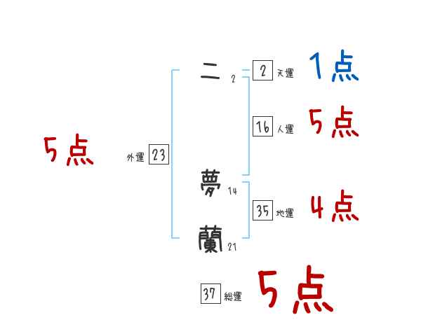 二夢蘭さんの画数の鑑定結果