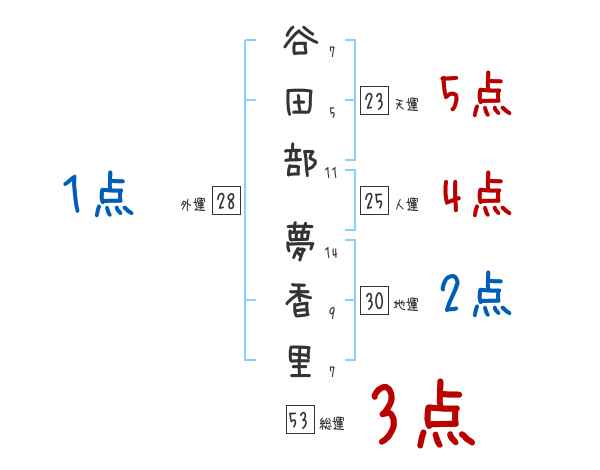 谷田部夢香里さんの画数の鑑定結果