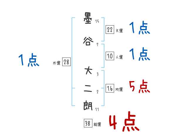 外運![]() | 墨谷大二朗さんの外運は28画の1つ星!家庭環境に注意。スポーツで活躍できる能力があるかも。 生活面を象徴する運勢です。外部から受ける影響力を表し、結婚運、家庭運や職場、環境への順応性を表します。 |