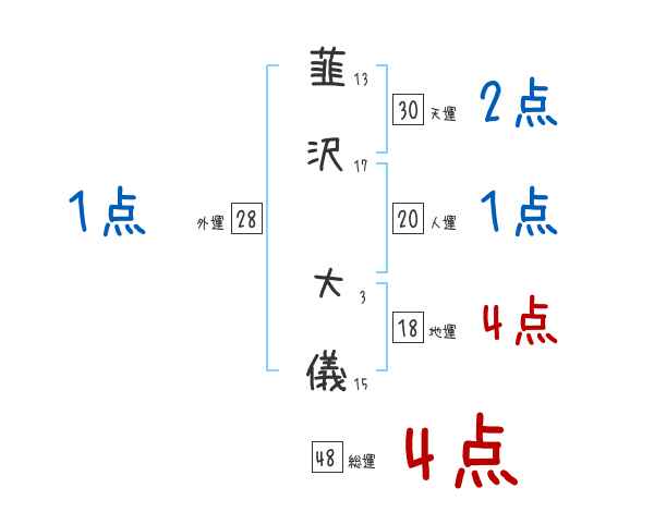 韮沢大儀さんの画数の鑑定結果