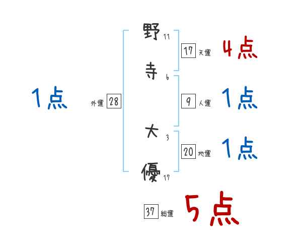 野寺大優さんの画数の鑑定結果