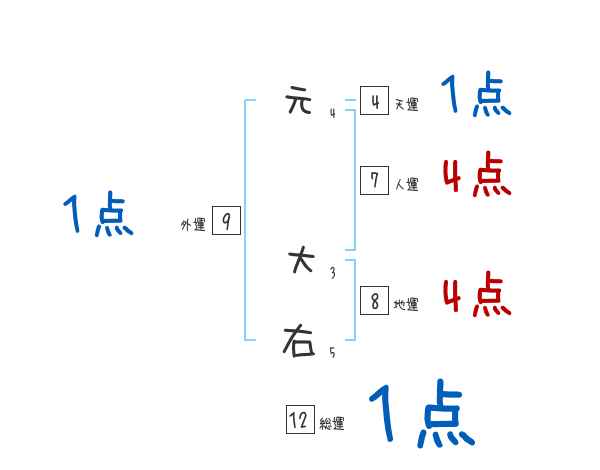 天運![]() | 元大右さんの天運は4画の1つ星!感情が不安定で苦労するかも。周囲との協調を心掛けましょう。 家系が持つ宿命的な運勢を表します。祖先から受け継いだ苗字ですので自分の力が及びません。家柄を象徴します。 |