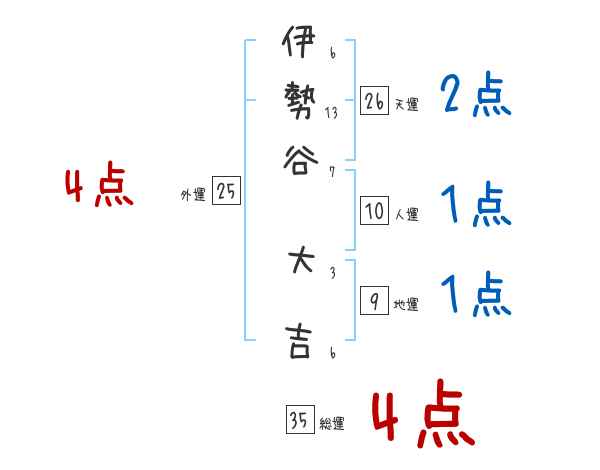 天運![]() | 伊勢谷大吉さんの天運は26画の2つ星!波瀾万丈かも。信頼できる人を大事にしましょう。 家系が持つ宿命的な運勢を表します。祖先から受け継いだ苗字ですので自分の力が及びません。家柄を象徴します。 |