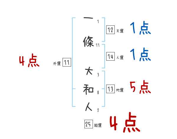 地運![]() | 一條大和人さんの地運は13画の5つ星!才能に恵まれ人気がある。名声を手に入れる。円満な人生。 個性を表す基礎的な運勢です。性格形成や対人関係、行動力など家庭環境に影響されます。主に誕生してから20歳くらいまでの若年期の運勢を表します。 |