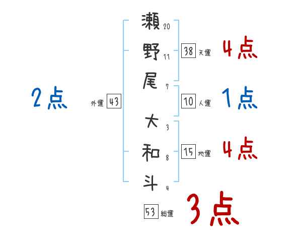 瀬野尾大和斗さんの画数の鑑定結果