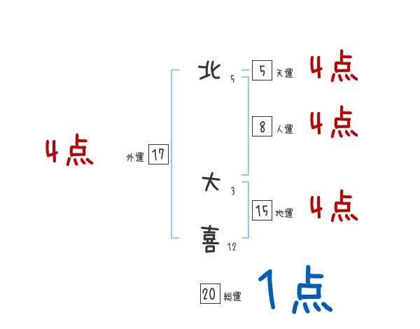 北大喜さんの画数の鑑定結果