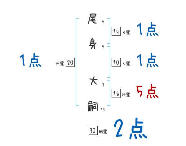 尾身大嗣さんの画数の鑑定結果